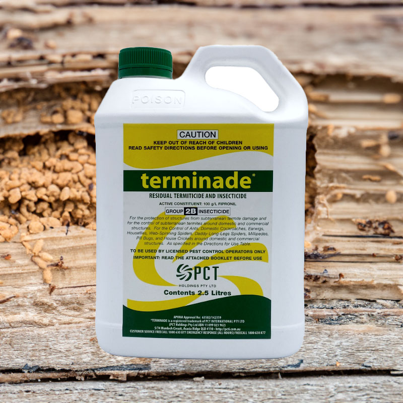 PCT’s TERMINADE residual termiticide gives you excellent value in a 100g/LFipronil termite control product. Label application rates can be used for: